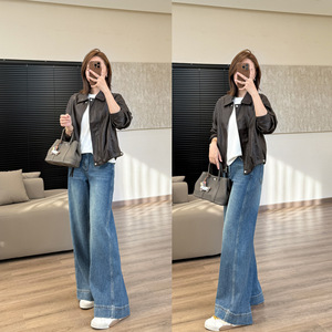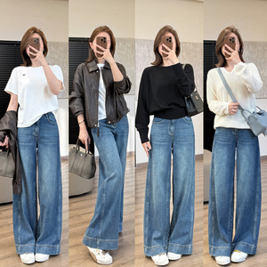 朵妮DN 自带气场特垂顺宽边阔腿裤!侧缝前移气质莱赛尔牛仔长裤
