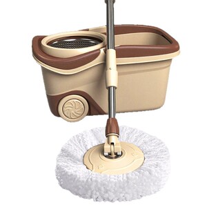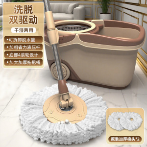 【浅棕色】拖把+加厚升级带滚轮拖把桶+可替换拖把棉头2个