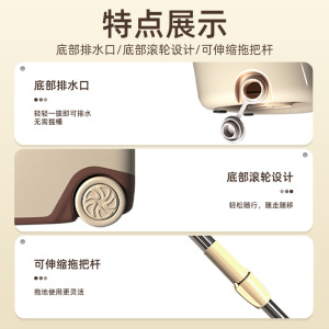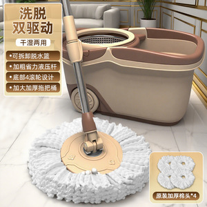 【浅棕色】拖把+加厚升级带滚轮拖把桶+可替换拖把棉头3个