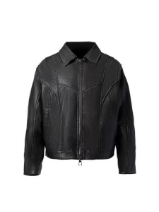 黑色LS258(二层皮重工荔枝纹皮衣)
