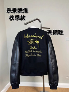 跨境皮衣上衣棒球服痞帅高级感夹克男女春秋冬荔枝纹皮机车服外套