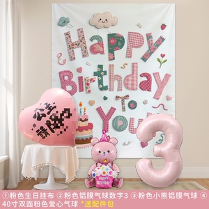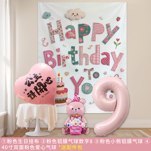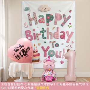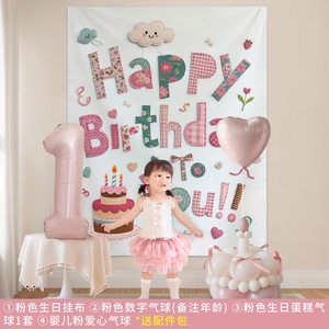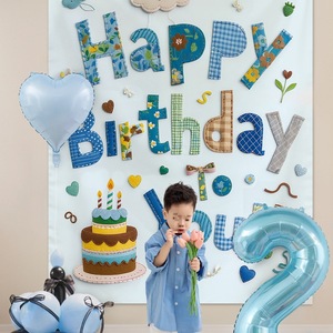 男孩女童2岁生日布置场景装饰派对背景墙画布气球氛围感拍照道具