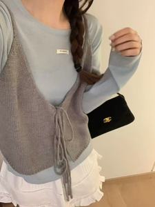 正反两穿韩系双V领绑带针织开衫马甲女2025秋季休闲吊带背心外搭