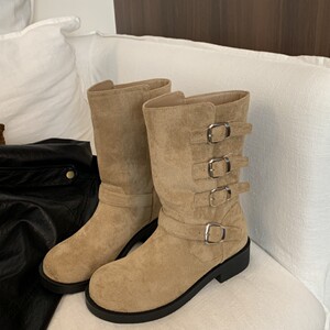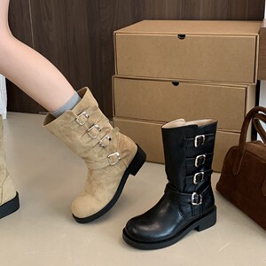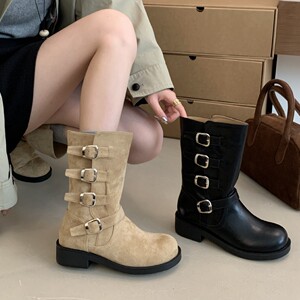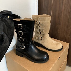 韩版皮带扣长筒马丁靴女2025年秋季新款英伦风复古百搭厚底骑士靴