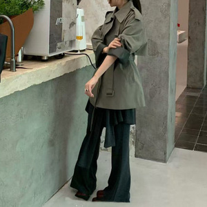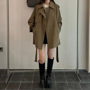 秋上新韩系复古中长款撞色时髦宽松显瘦外套风衣配腰带