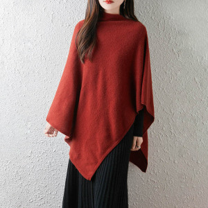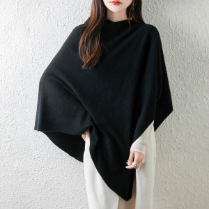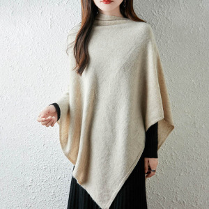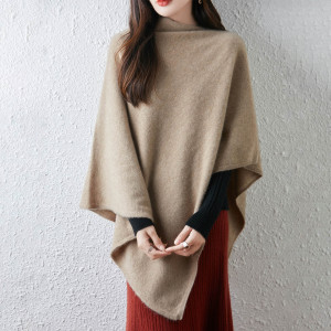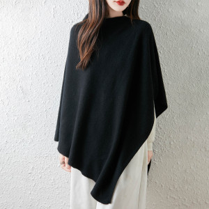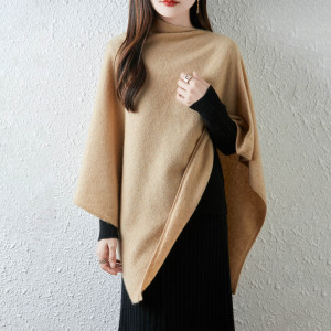 2025年秋冬新款纯羊毛针织披肩女纯色保暖护颈气质百搭围巾斗篷