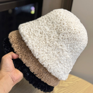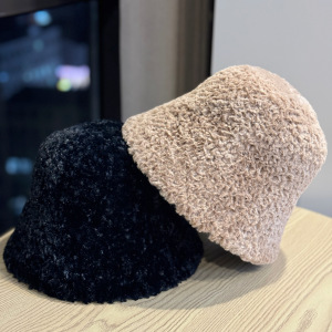 新款渔夫帽子女秋冬纯色百搭保暖毛绒盆帽小众设计素颜遮脸水桶帽