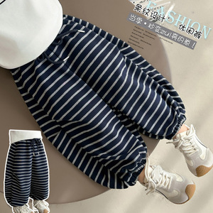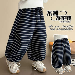女童裤子秋装2025新款儿童春秋款运动宽松小童女宝宝秋季条纹卫裤