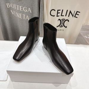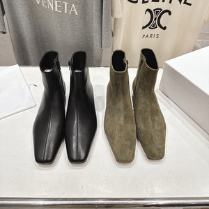 莞产高货2025年秋冬新款舒适小方头羊皮一脚蹬复古裸靴切尔西短靴