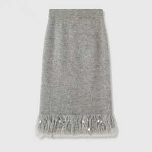 2025秋季新款手工珠片瀑布流苏 亲肤马海毛羊毛扣式短开衫半裙