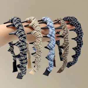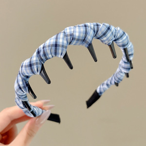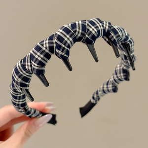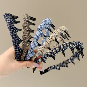 法式格子布艺带齿防滑高颅顶发箍高级感洋气时尚优雅气质头箍发饰