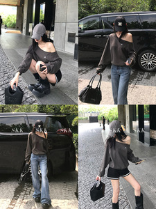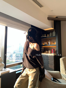【露思同款】斜肩露肩小标宽松套头卫衣长袖慵懒松弛感上衣女夏秋