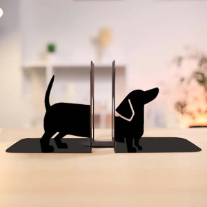 跨境开学季可爱小狗书立铁艺收纳书籍展示架桌面收纳文具L型书挡
