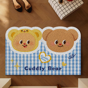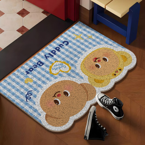 黄油小熊丝圈地垫门外蹭土入户地垫家用防滑脚垫可裁剪玄关门垫