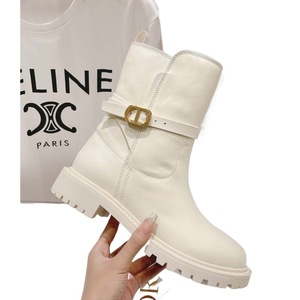 广州原标专柜品质欧美大牌真皮女式短套筒靴皮带扣显瘦厚底时装靴