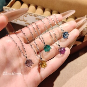 时尚轻奢八角千禧玫瑰切经典六爪吊坠镶嵌高碳钻帕拉伊巴项链女