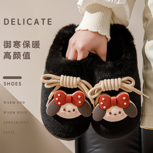 2025新款棉拖鞋女秋冬季蝴蝶结家居室内加绒保暖防滑厚底女拖鞋