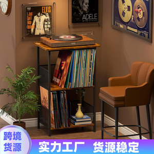 跨境落地式黑胶唱机桌黑胶唱片收纳架卧室客厅沙发边几双层置物架
