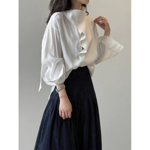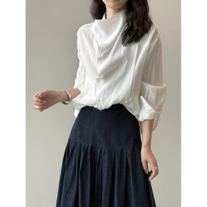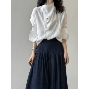 现货厂家批发 新款 荡领长袖衬衫女du特气质通勤不规则 上衣