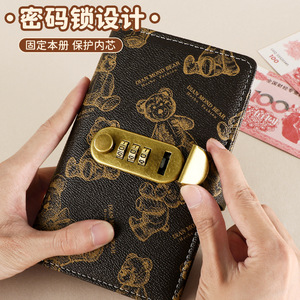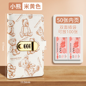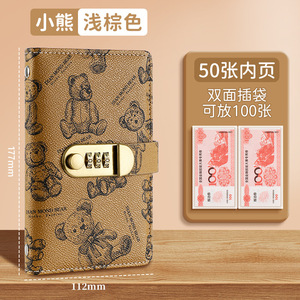跨境2025年新款小熊密码锁现金存钱本a6记账本存钱夹钱册理财钱包
