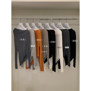 【柠檬绿茶】8321爆慵懒氛围感一字肩修身针织衫