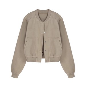 卡其色毛呢棒球服短外套女秋季美式风小个子短款气质oversize夹克