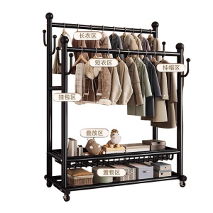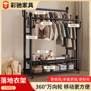 双杆挂衣架落地卧室多功能衣帽架可移动衣服家用阳台卧室衣帽架