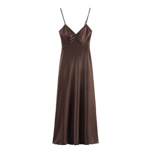 ZR外贸批发 欧美风女装 时尚褶皱丝缎质感迷笛吊带连衣裙 8394331
