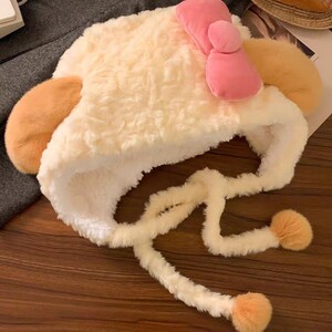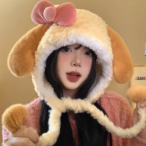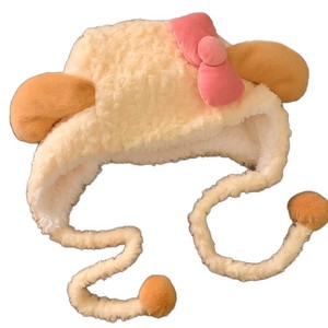 可爱小狗新款毛绒帽子蝴蝶结潮防寒加绒加厚雷锋帽冬天学生护耳帽