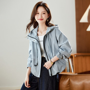 休闲工装风连帽短外套女2025春秋新款宽松百搭休闲夹克小个子上衣