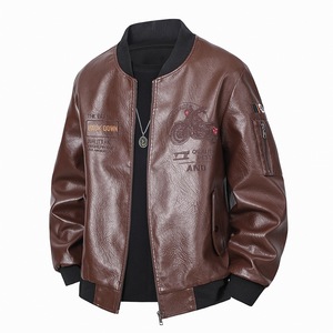 跨境批发皮衣男士新款秋冬季外套时尚大码皮夹克 有加绒款