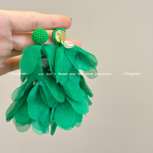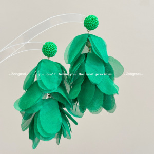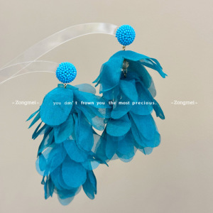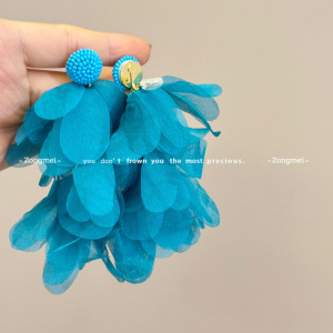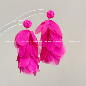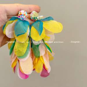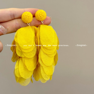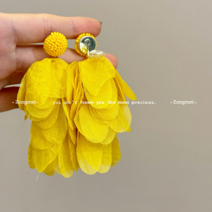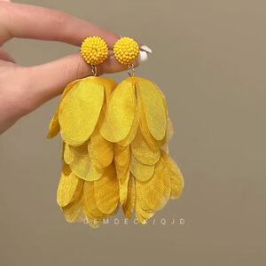 彩色流苏耳环 海边度假氛围黄色耳钉花瓣耳环波西米亚无耳洞耳夹