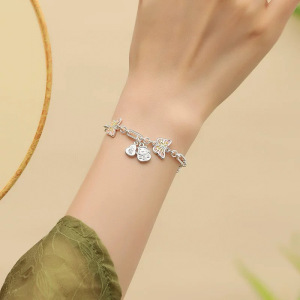 银佳银饰 足银999.9 珐琅蝴蝶手链 时尚潮流 精品现货一件代发