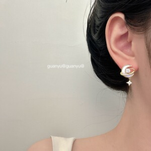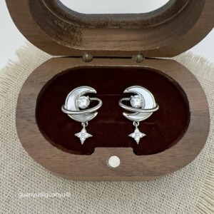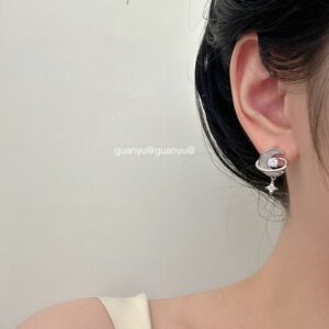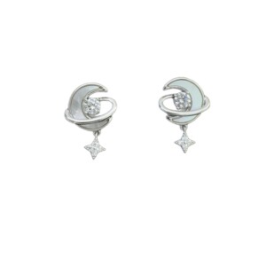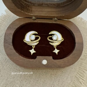 新款高级感贝壳月亮锆石吊坠耳钉女时尚轻奢精致气质甜美百搭耳环