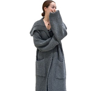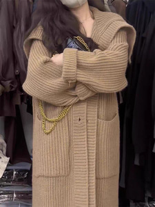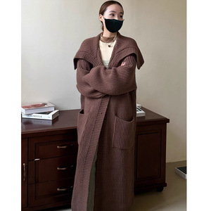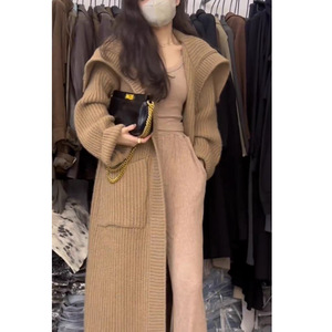 长款翻领毛衣外套女秋冬新款慵懒风宽松气质加厚长款针织开衫