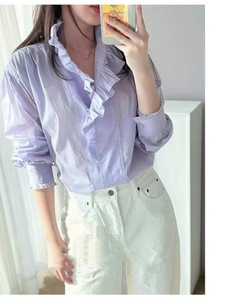 设计不规则木耳边丝棉衬衫女欧货2025秋季新款气质通勤上衣不退换