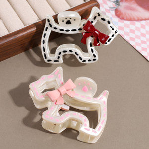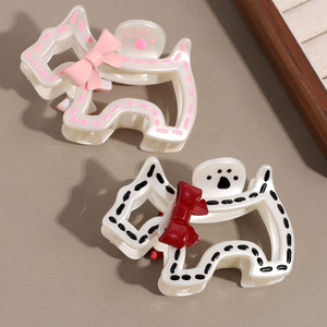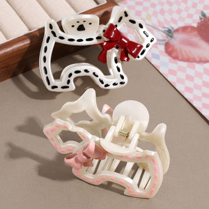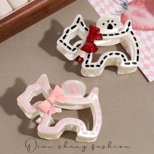 韩系新款甜美可爱波点狗蝴蝶结抓夹脑勺半扎发抓镂空发夹头饰发饰