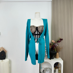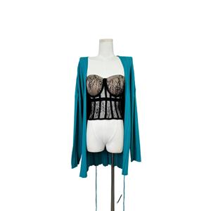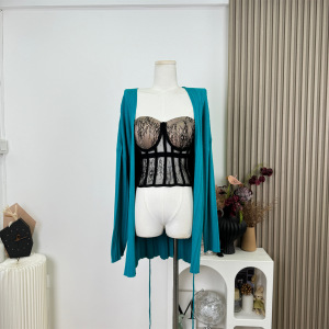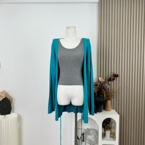 显白滤镜慵懒风宽松气质孔雀绿显白针织长开衫上衣