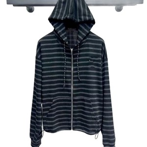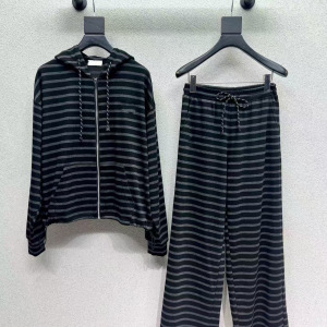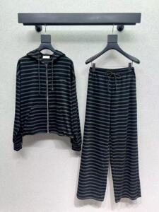深圳南油直供25年秋季减龄百搭条纹连帽上衣高腰休闲裤时尚套装