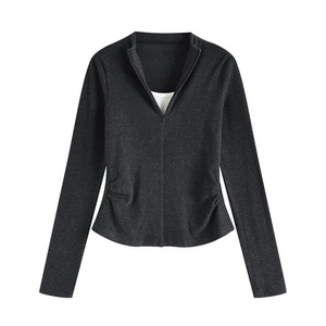 半开领假两件拼色长袖T桖女秋季新款2025设计感宽松显瘦时尚上衣