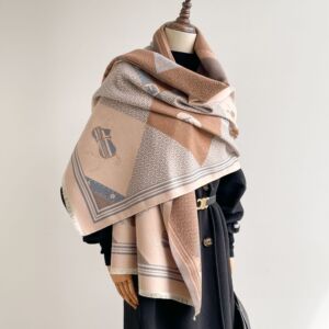 围巾女士加厚保暖爱马仕橙色骏马提花围脖秋冬季旅游两用披肩外搭