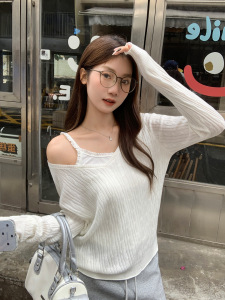 白色V领设计感麻花针织长袖女2025秋季新款宽松显瘦慵懒风上衣