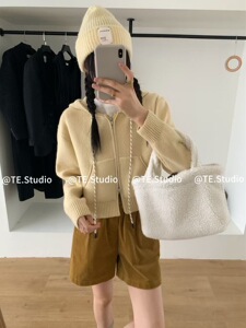 气质休闲连帽开衫毛衣外套女2025秋冬季新款韩版短款双拉链针织衫