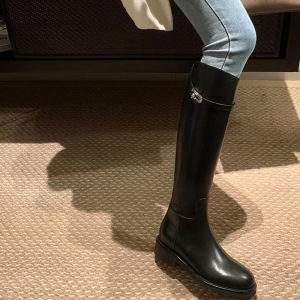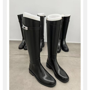 葡萄妈同款2025秋冬新款长筒靴女时尚厚底圆头水钻扣高筒骑士靴女