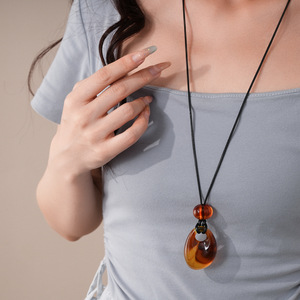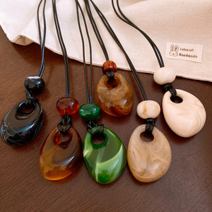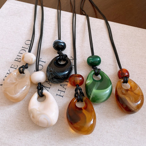 蜡绳亚克力椭圆吊坠项链时尚简约高级感锁骨链小众气质百搭饰品女