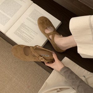法式交叉扣带时尚款玛丽珍鞋女2025春季新款芭蕾舞鞋内增高单鞋子
