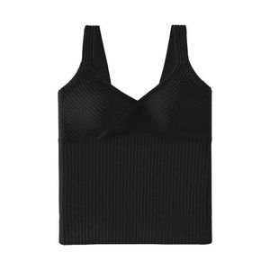 秋冬交叉V领螺纹保暖小胸显大可拆杯垫百搭显瘦长款保暖吊带背心