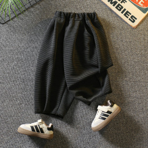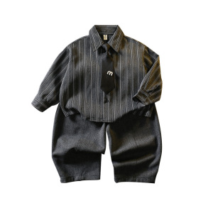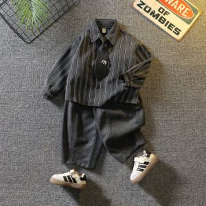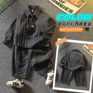 男童秋装黑条衬衫搭西裤套装春秋韩版儿童痞帅洋气2件套男孩衣服