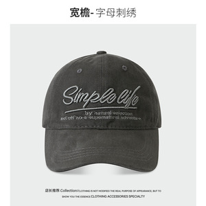 新款韩版立体刺绣英文鸭舌帽美式复古休闲百搭显脸小大头围棒球帽