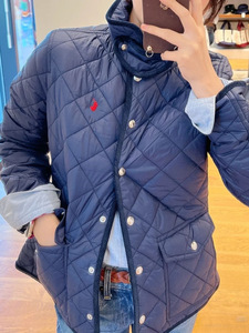 现货2025冬季拉夫棉服小马刺绣复古POLO翻领菱形格纹休闲百搭外套